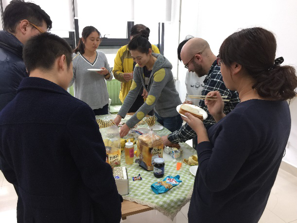 活动于中午12:30正式开始,活动开始后,Taylor首先大家展示了4种经典三明治的制作方式,之后,各位老师亲自动手尝试制作,Taylor教授的制作方式上大胆创新,制作出风格各异的三明治制作结束后,大家一起分享劳动果实几种创新方式三明治还受到广泛好评活动在轻松愉悦的氛围中开展,并圆满结束。