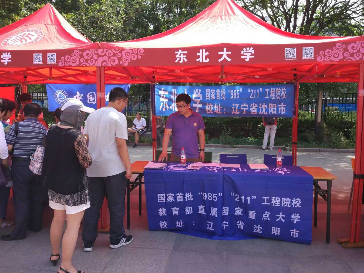 北京招生宣传工作组工作主要负责在北京各大高校自主招生期间设东北大学展位,对考生家长进行招生宣传以及高考后报志愿前集中到北京各目标中学进行招生宣传。全年不定期赴北京各目标中学开展东北大学招生宣传工作。