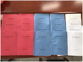 教学办提供了近三个学年六个学期的教学大纲、教学日历、试卷各类归档材料、实践教学归档材料(含实验、程序实践、实训、毕业设计、实习、实验教学文件、实验室管理制度、学生实验报告、实习基地各种文档等);2011-2016级培养计划及2016级三个专业五种模式197门课程的课程简介;各类质量工程项目统计表及支撑材料;课程相关部分教学文档数量见下表。
