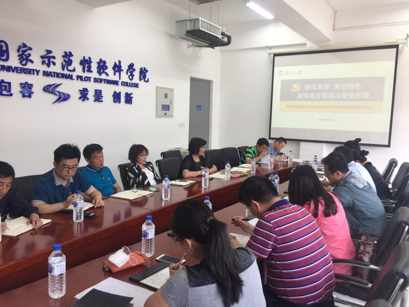 会上,陈晨书记和中荷学院机关党支部书记梁继红分别结合“三型”党支部建设和党支部规范化建设,介绍分享各自党支部建设、党支部战斗堡垒作用强化和党员先锋模范作用发挥,希望加强两院间党支部的交流与沟通,相互借鉴,相互学习