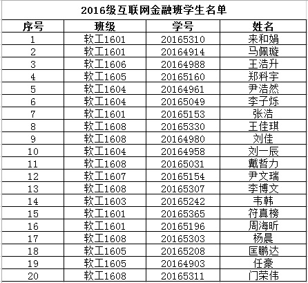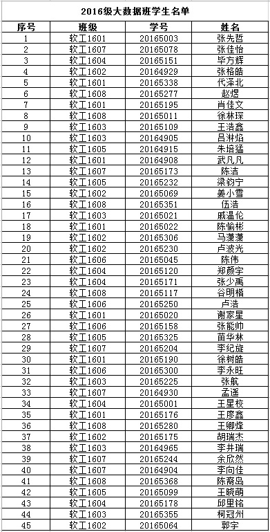 现公布欧亿体育2016级本科生大数据班及互联网金融班学生名单如下: