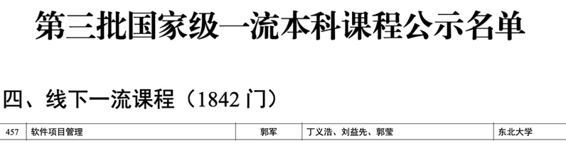 近日,第三批国家级一流本科课程公示名单正式发布。其中,我院郭军老师负责的《软件项目管理》课程成功入选,获评“线下一流本科课程”。